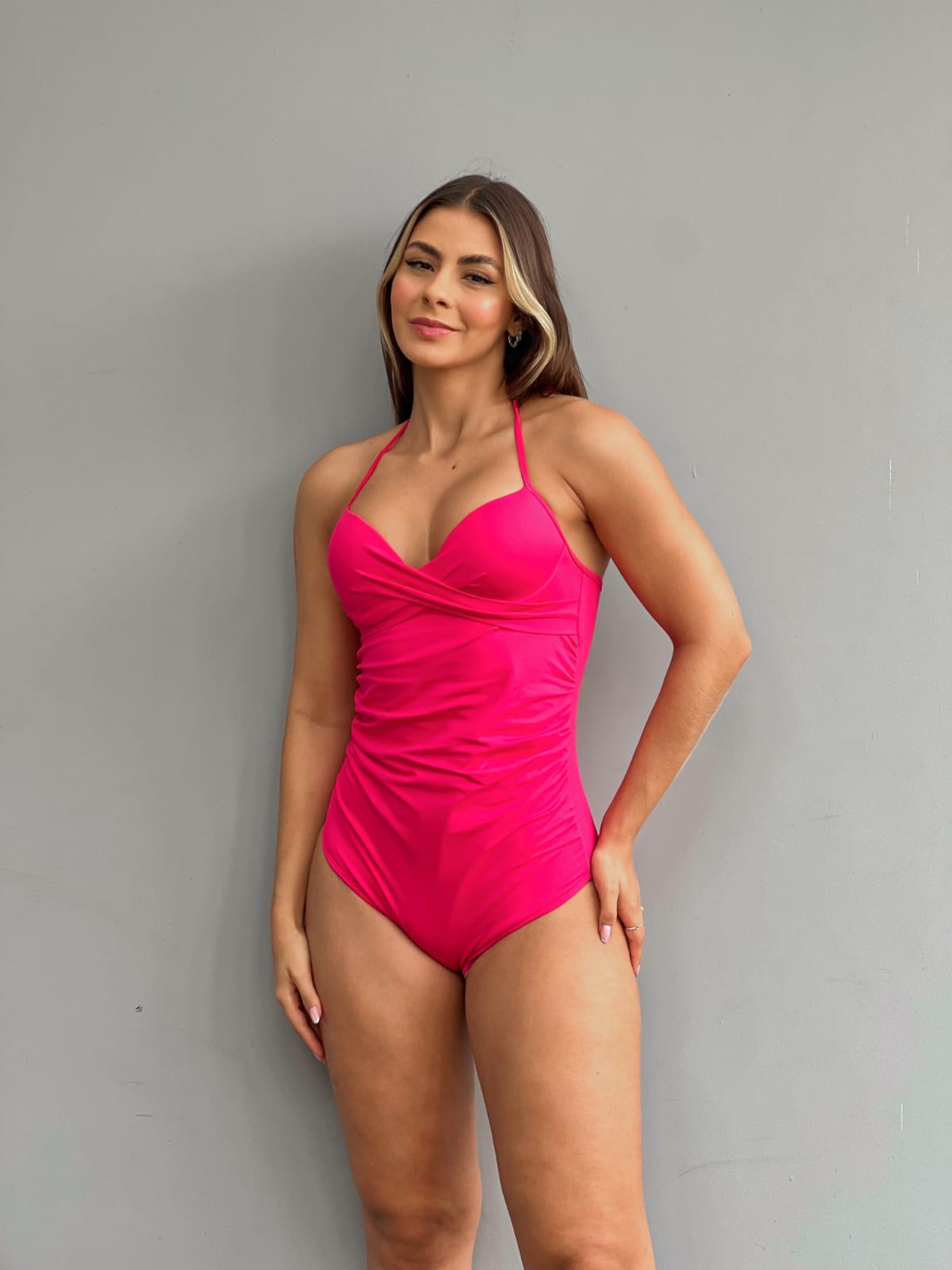 Maiô Mery, com frufru na frente, tanga e abertura nas costas